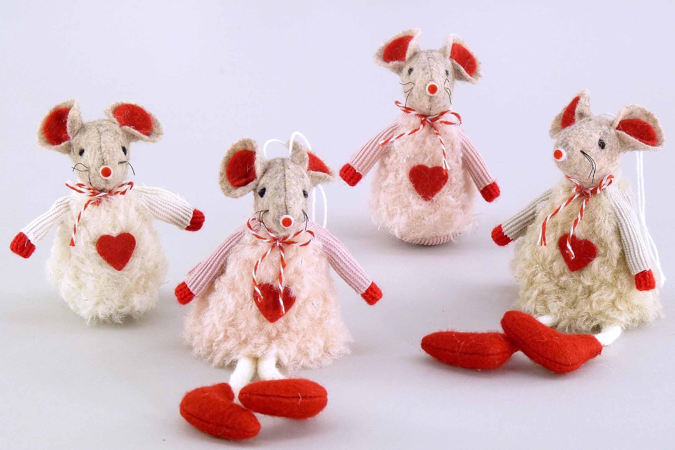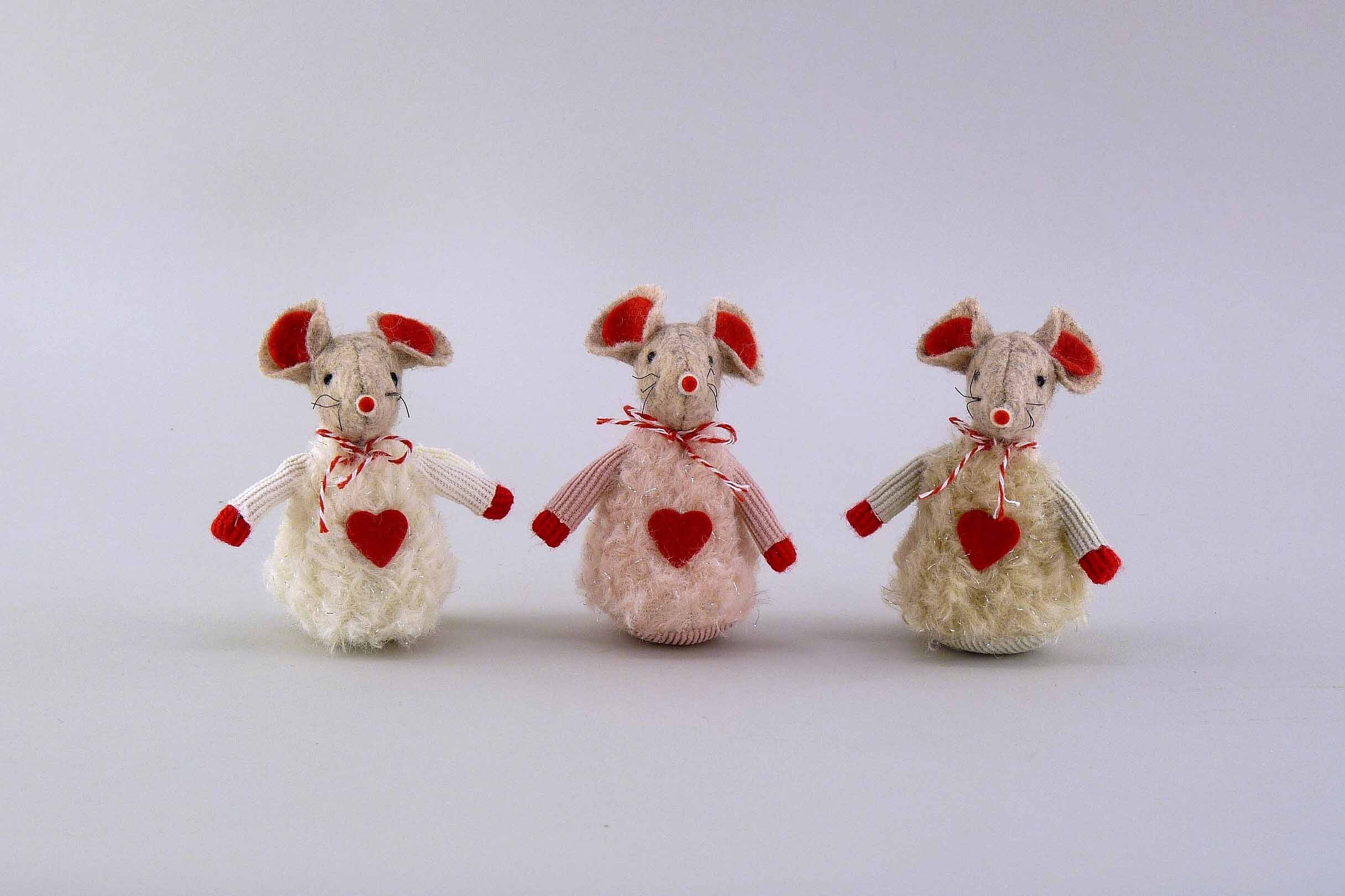 Filz/Stoff-Maus rot-creme/braun/rosa sort. H8cm